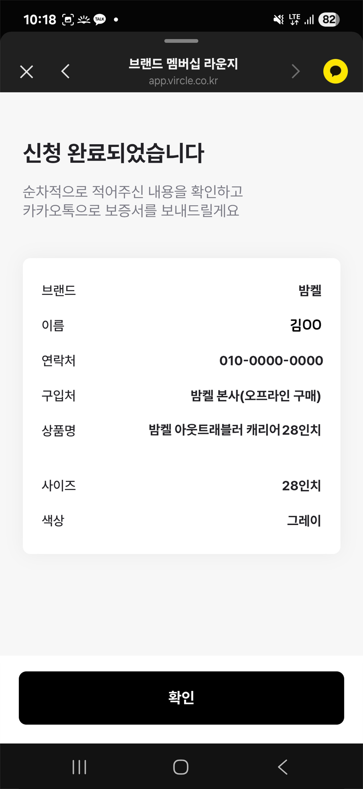 구매 확정일로부터 14일 후, 카카오톡 알림톡을 통해 자동 전송되며이를 통해 프리미엄 전용 서비스와 간편한 A/S 신청이 가능합니다.