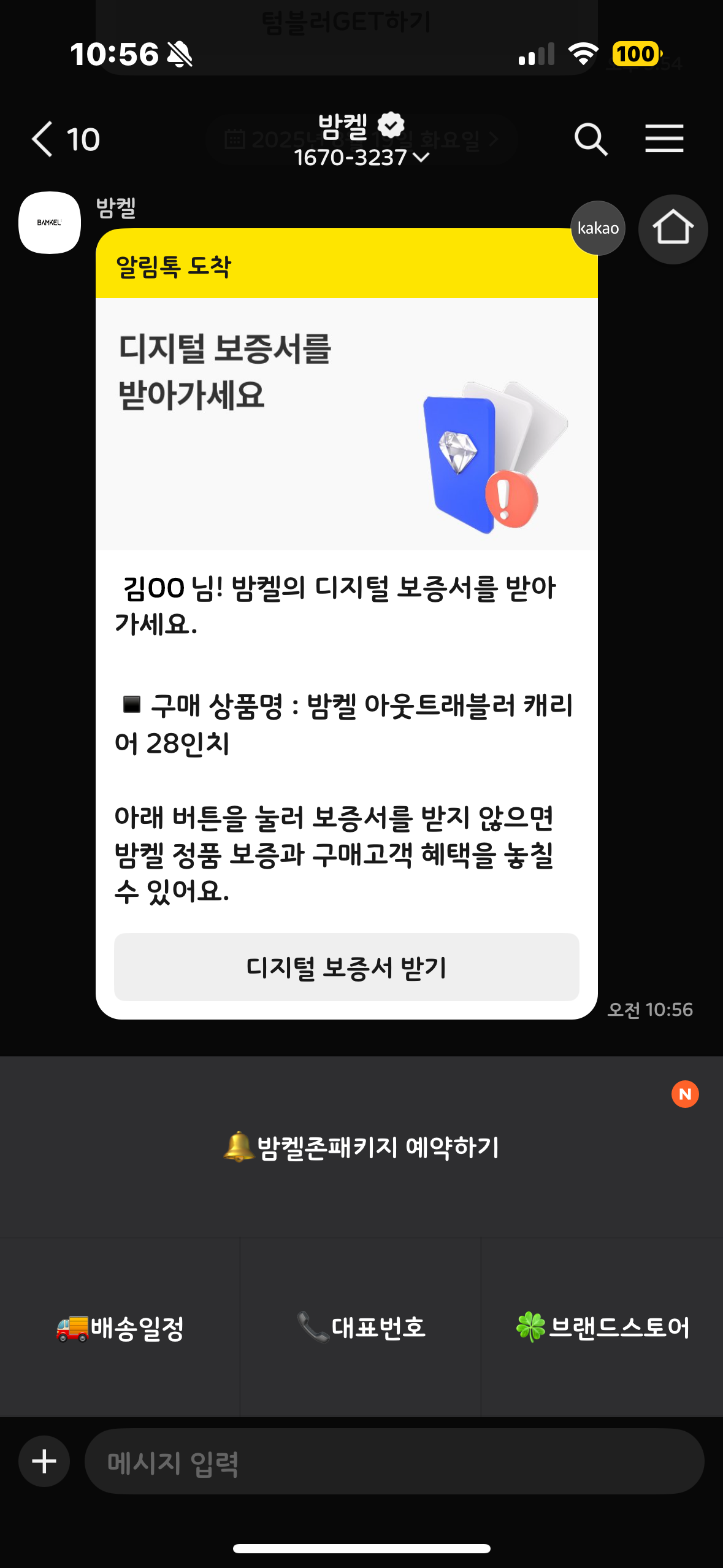 공식 온라인 판매처에서 구매하신 제품은,구매 확정일로부터 14일 후 카카오톡 알림톡을 통해디지털 보증서가 자동 발송됩니다.