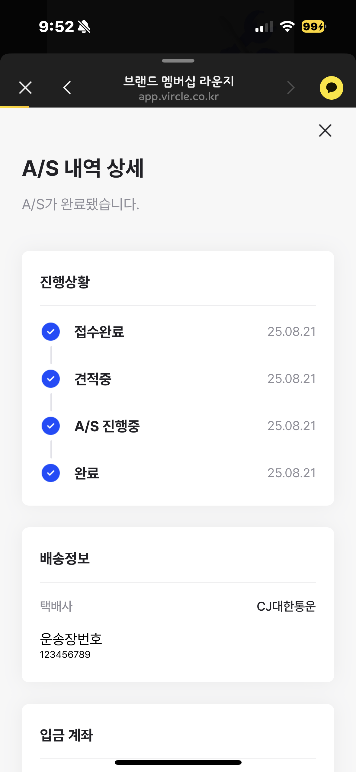 구매 확정일로부터 14일 후,카카오톡 알림톡을 통해 자동 전송되며이를 통해 프리미엄 전용 서비스와간편한 A/S 신청이 가능합니다.