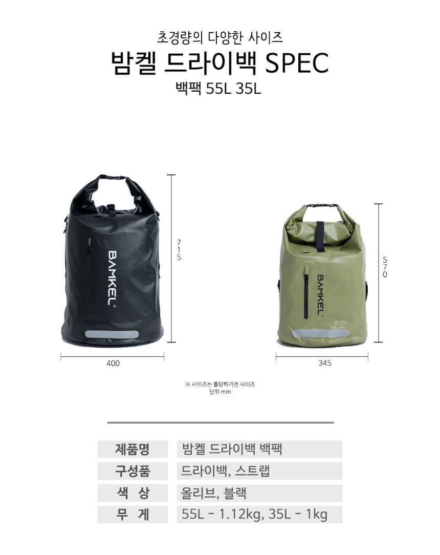 밤켈 방수 드라이백 백팩은 비가오나 눈이오나 여러분의 소중한 귀중품을 지켜드립니다.